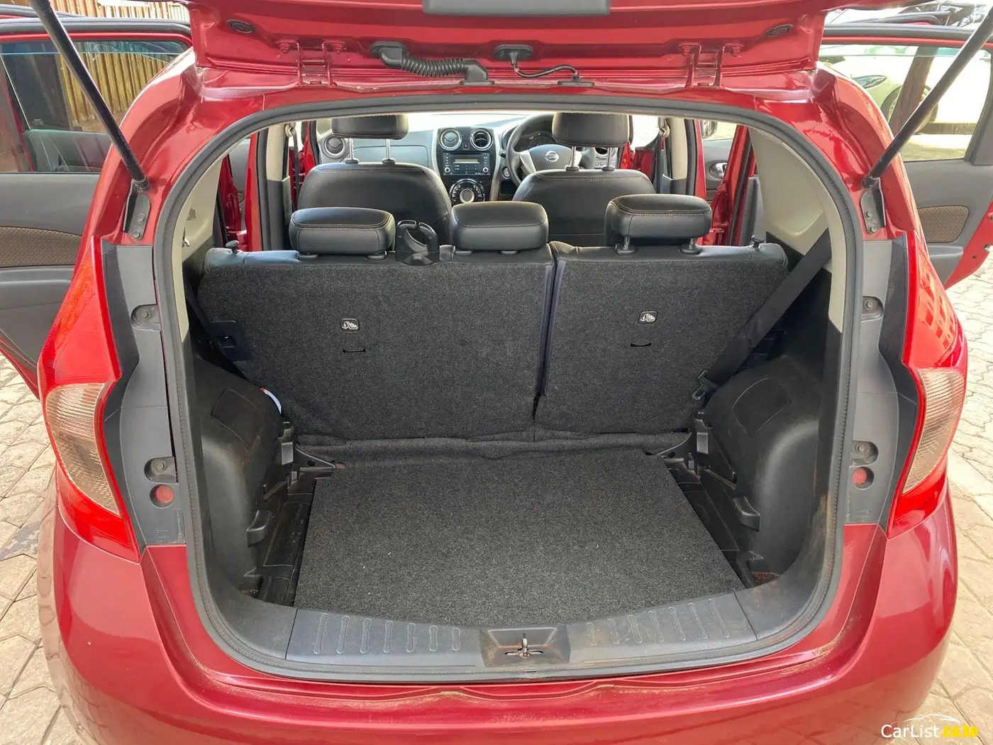 Nissan Note Medalist Model 2015 1200cc Petrol Red Original paint 77300kms genuine mileage Parking sensors 360 camera Suspension 💯 Keyless entry Auto stop Lane assist Eco mode Automatic transmission Half leather/fabric interior Side mirror indicators Xenon headlights Fog lights Trade in accepted KDK Price 780,000