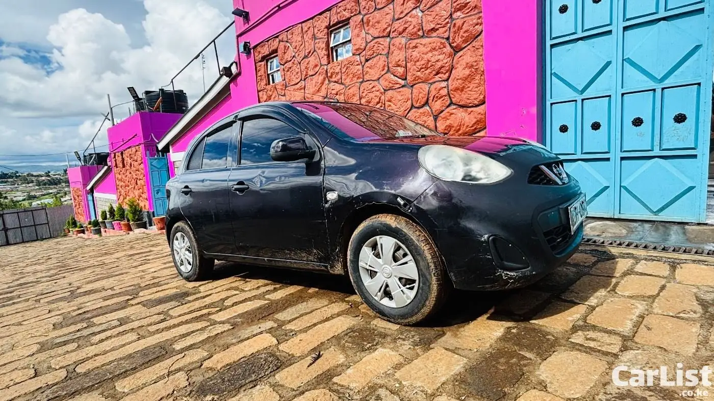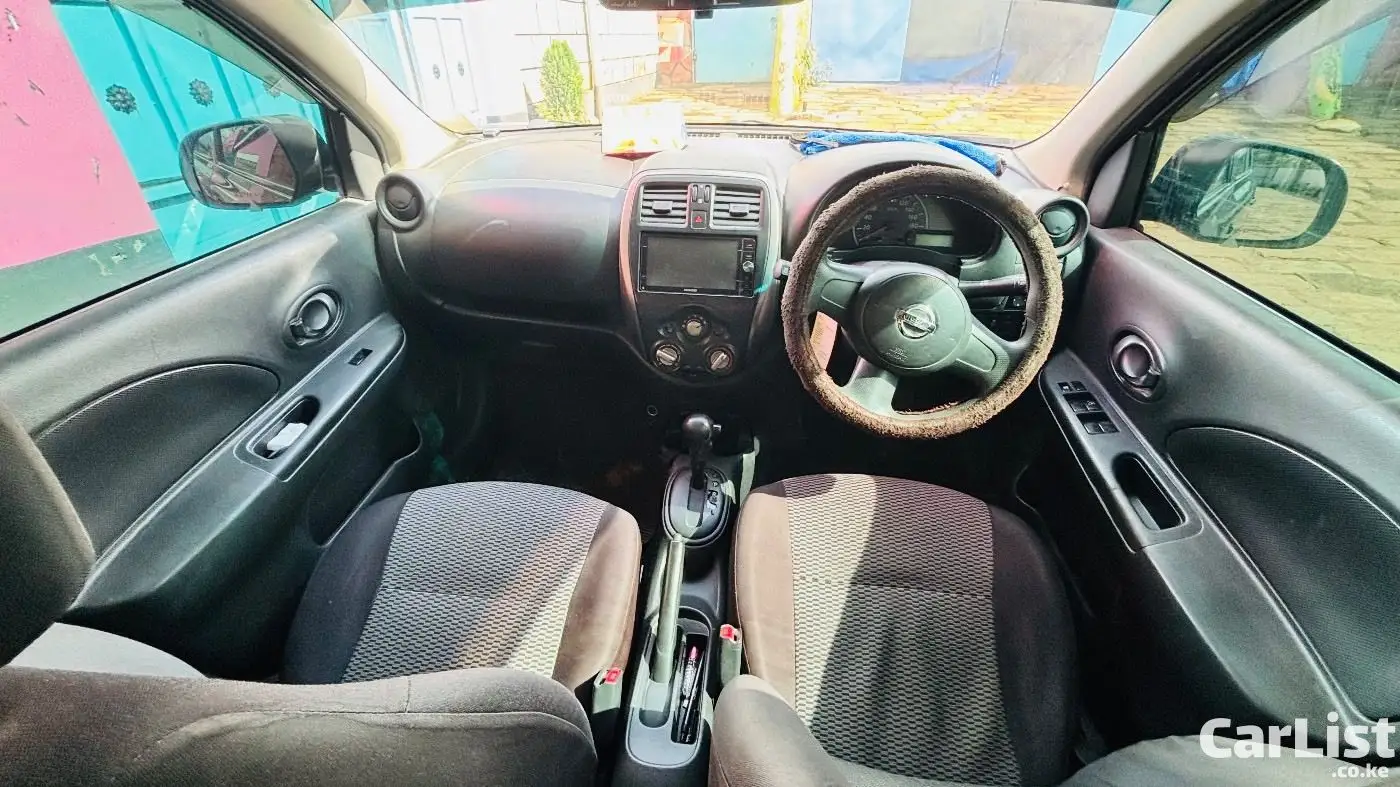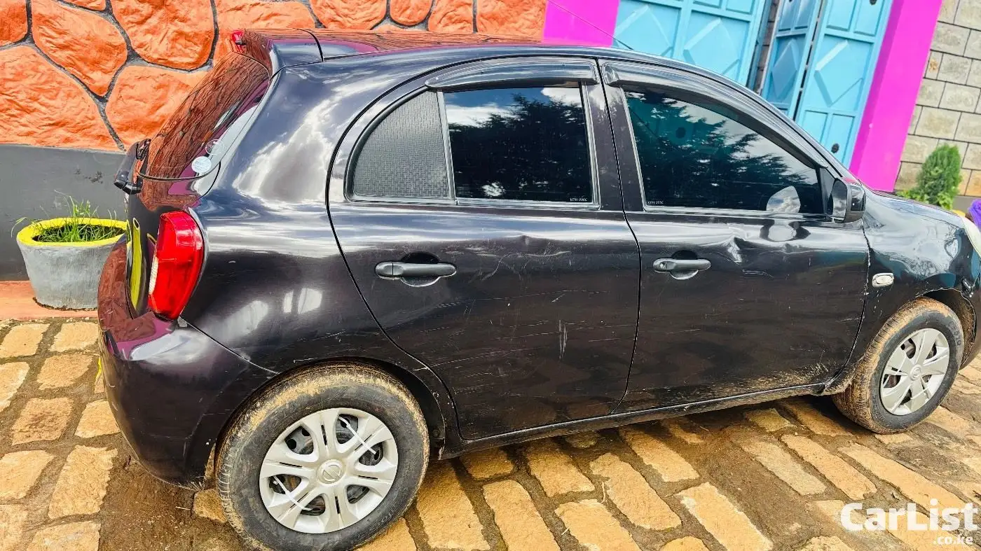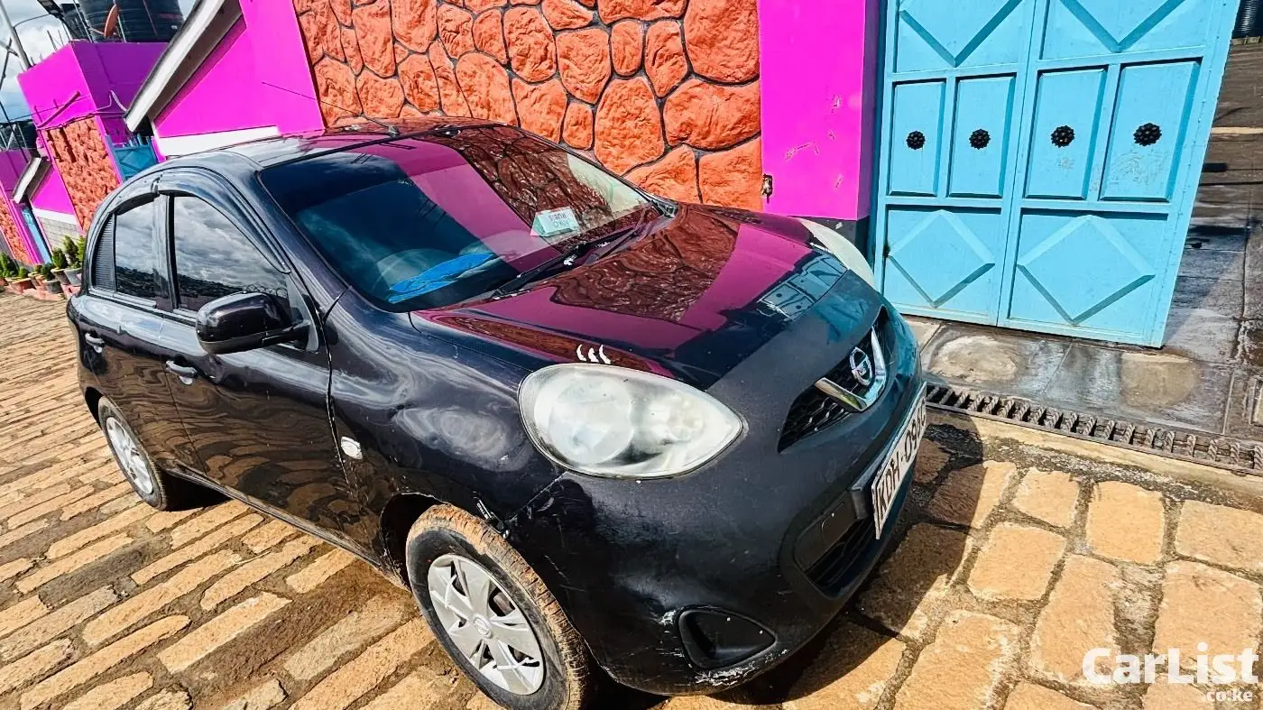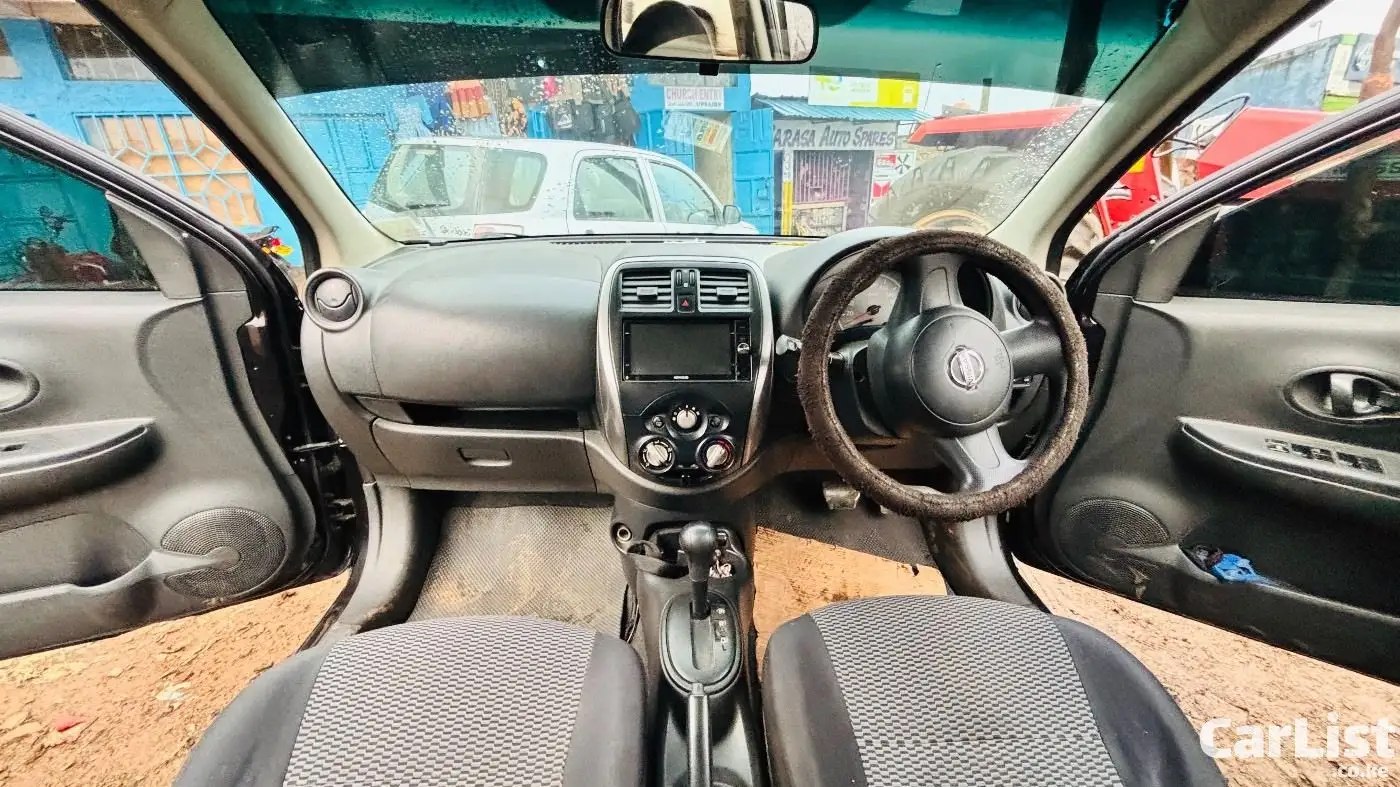 Nissan March 2015 (K13), 1200cc automatic, dark purple (appears black). Well maintained, fuel efficient, ideal for daily use. Features include ABS, 2 airbags, power windows, electric mirrors, Kenwood screen, central locking. Good condition with minor scratches.