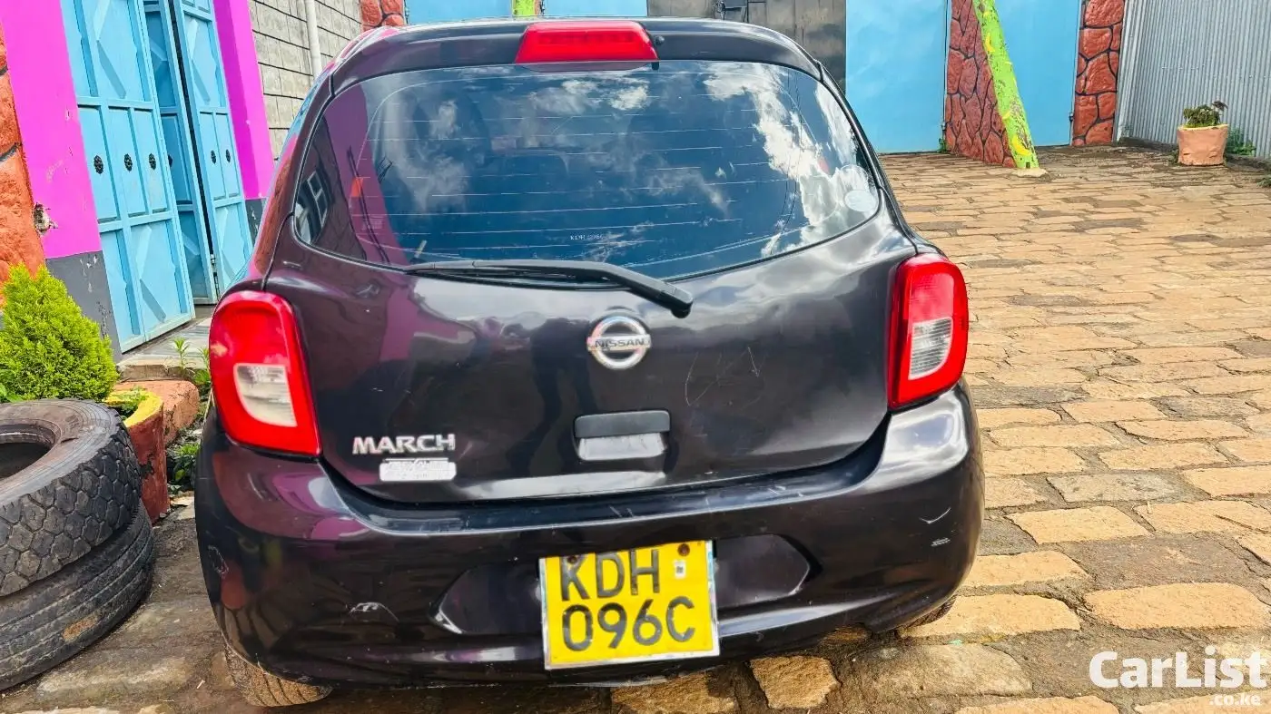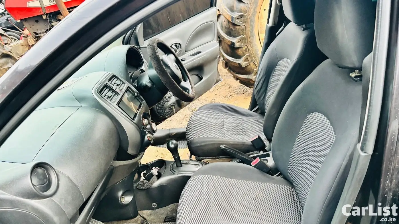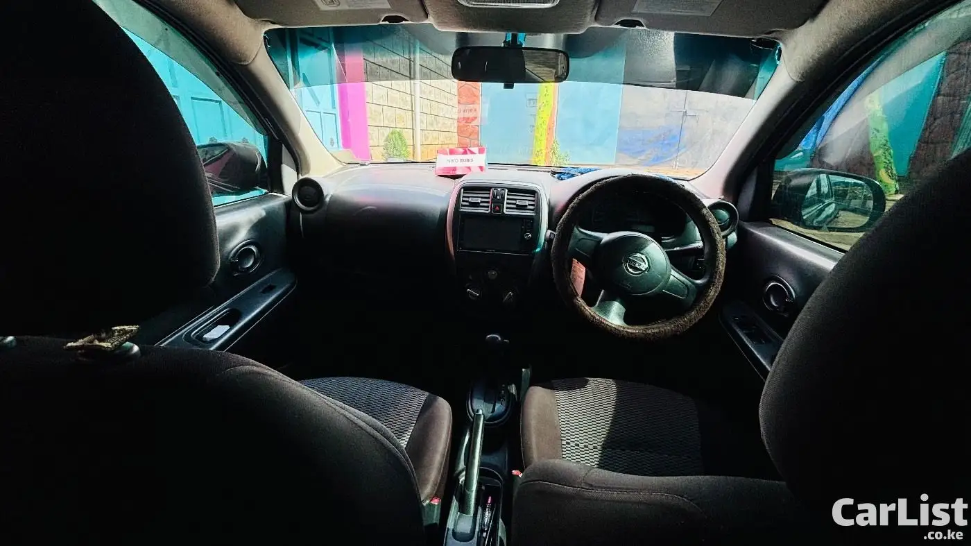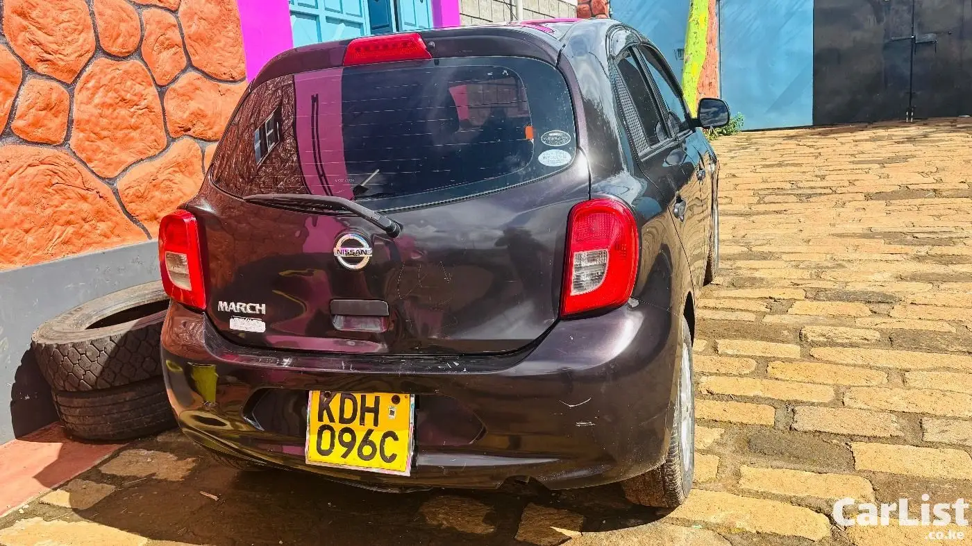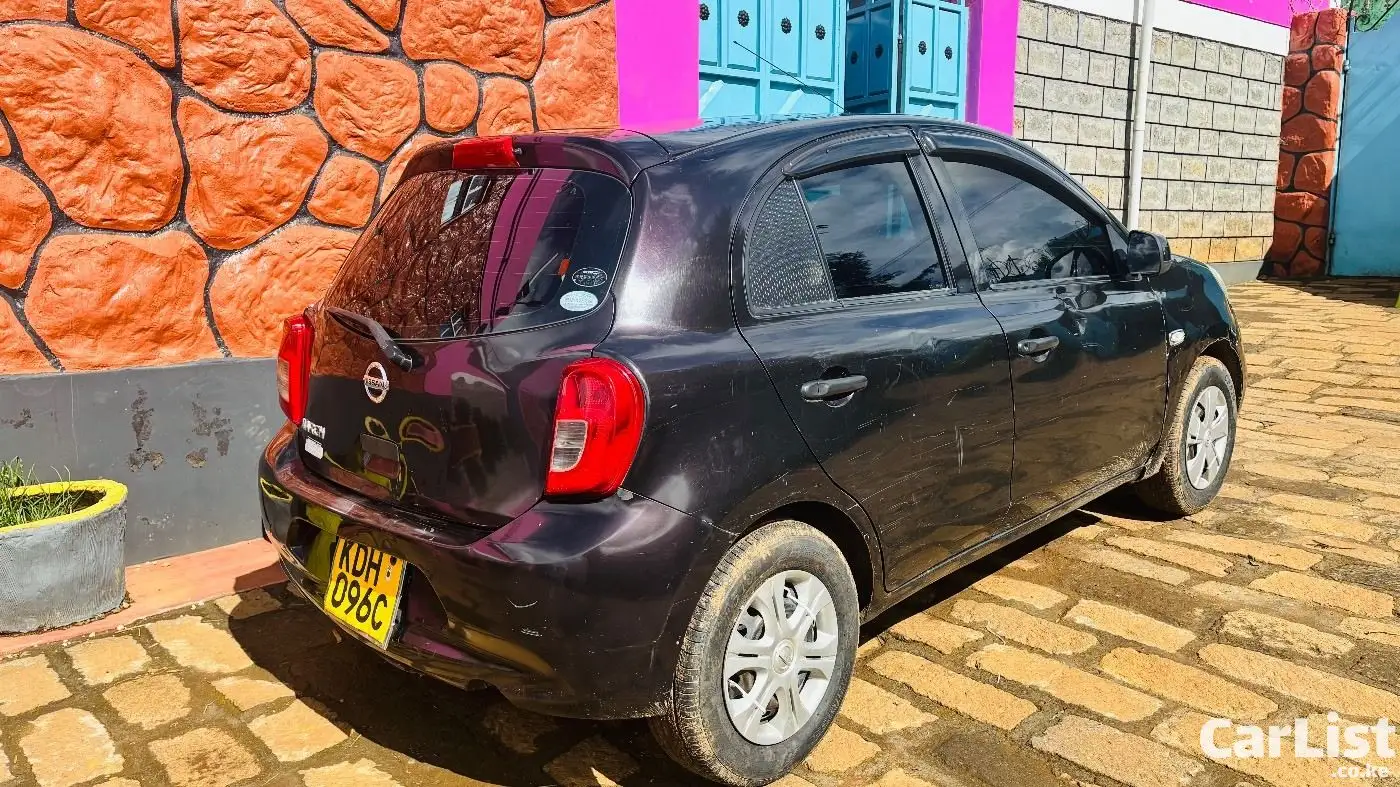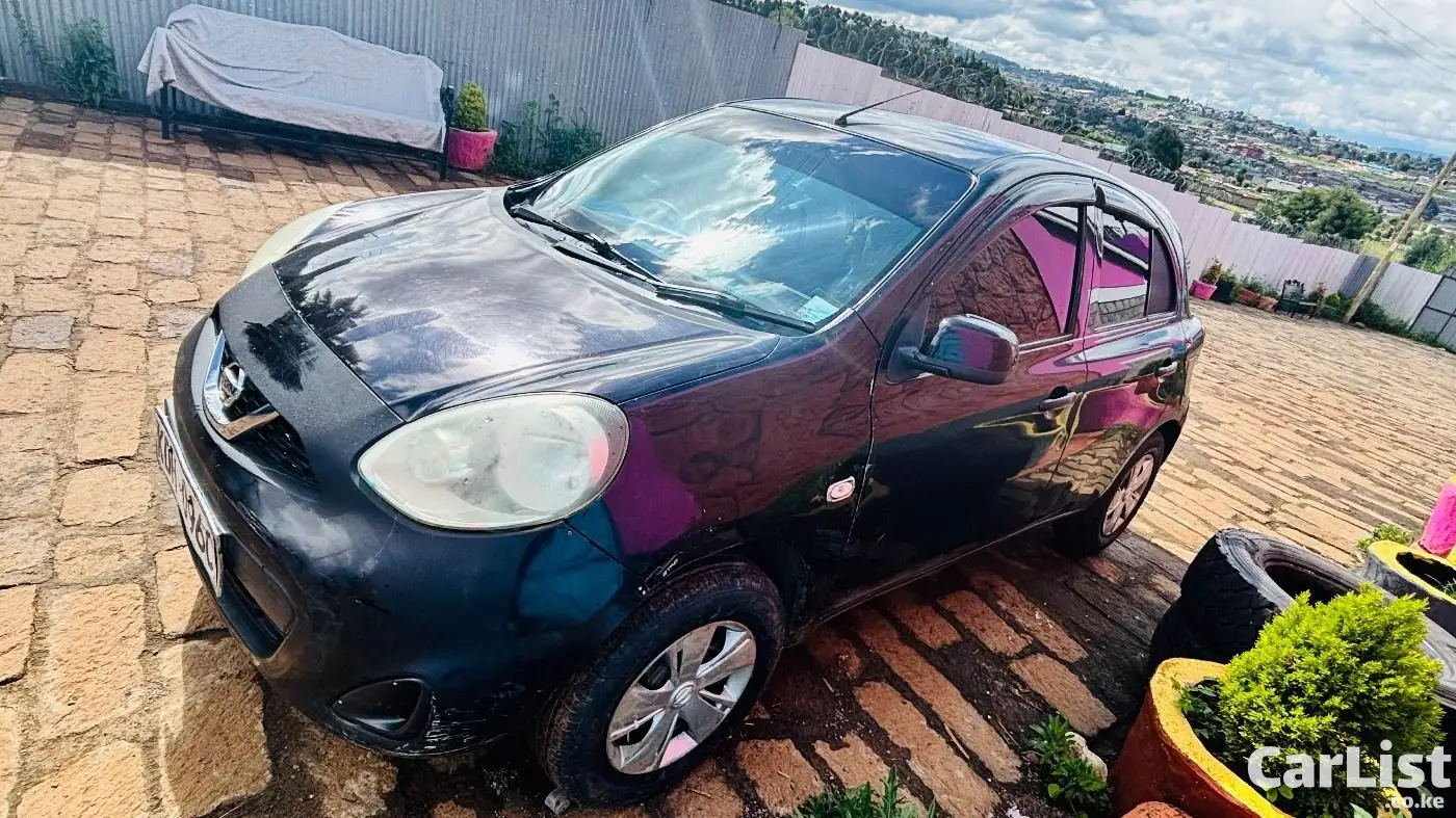 Nissan March 2015 (K13), 1200cc automatic, dark purple (appears black). Well maintained, fuel efficient, ideal for daily use. Features include ABS, 2 airbags, power windows, electric mirrors, Kenwood screen, central locking. Good condition with minor scratches.