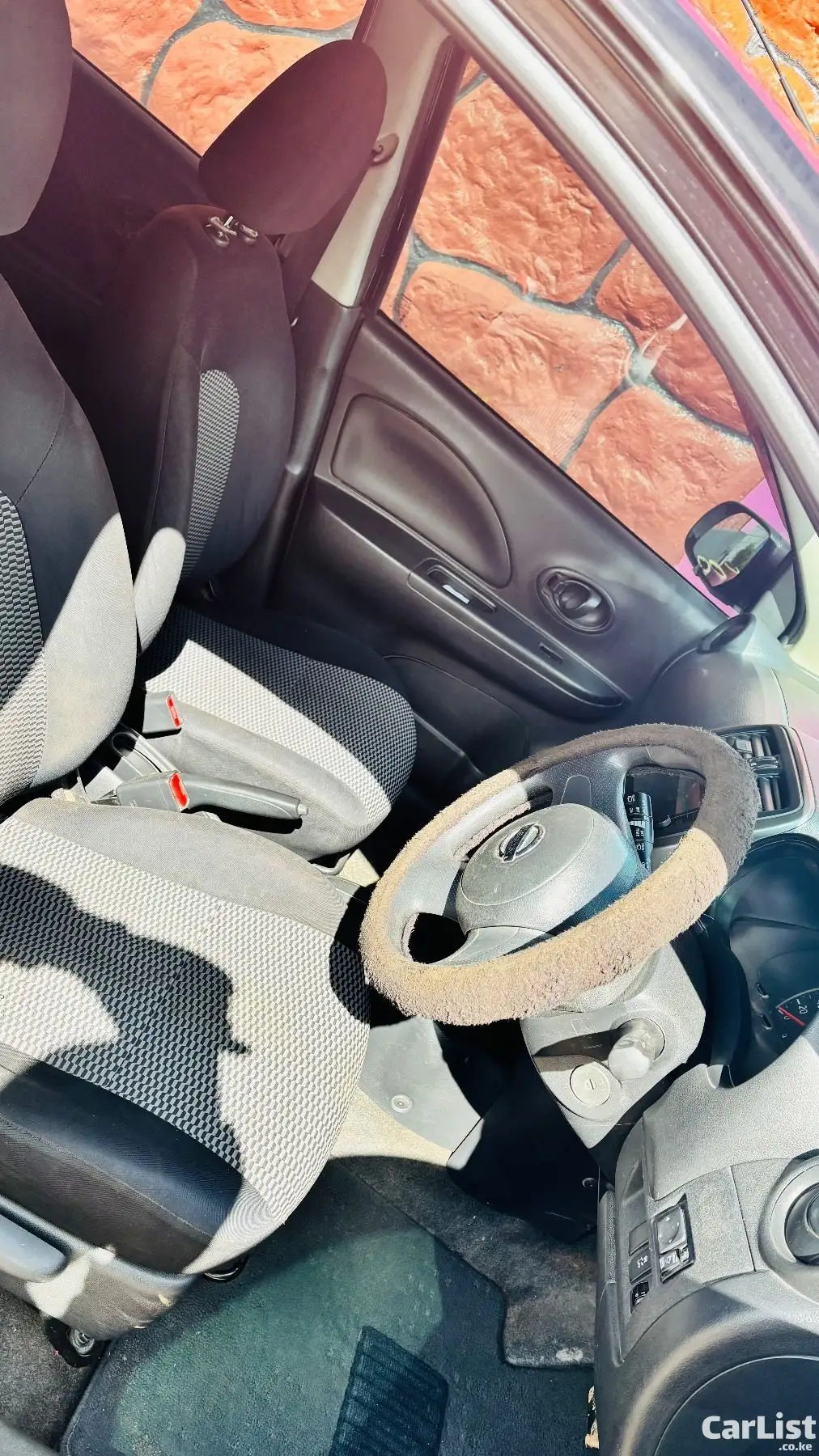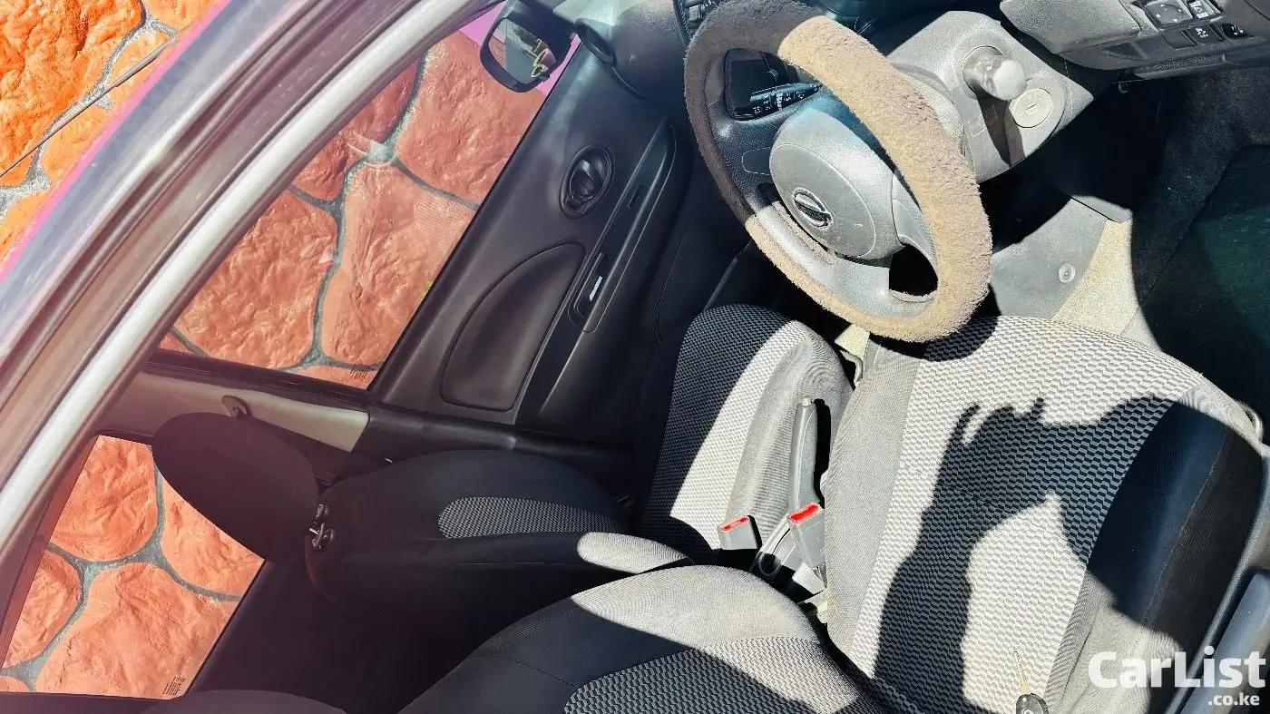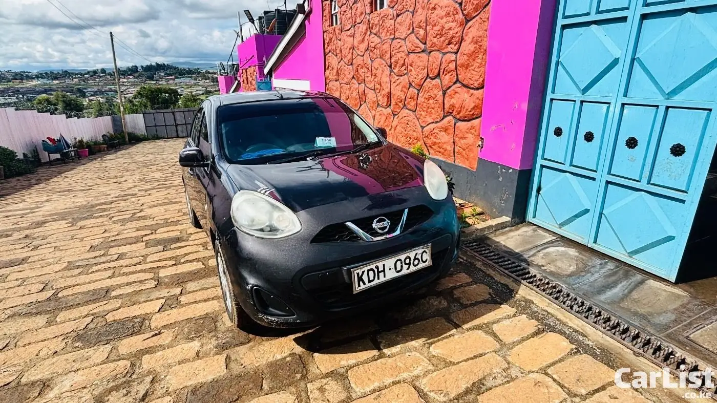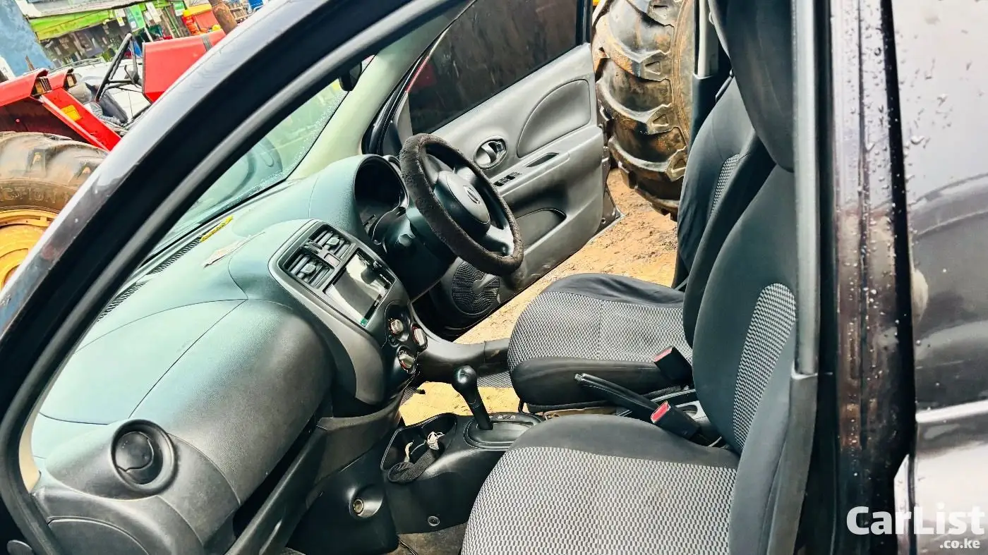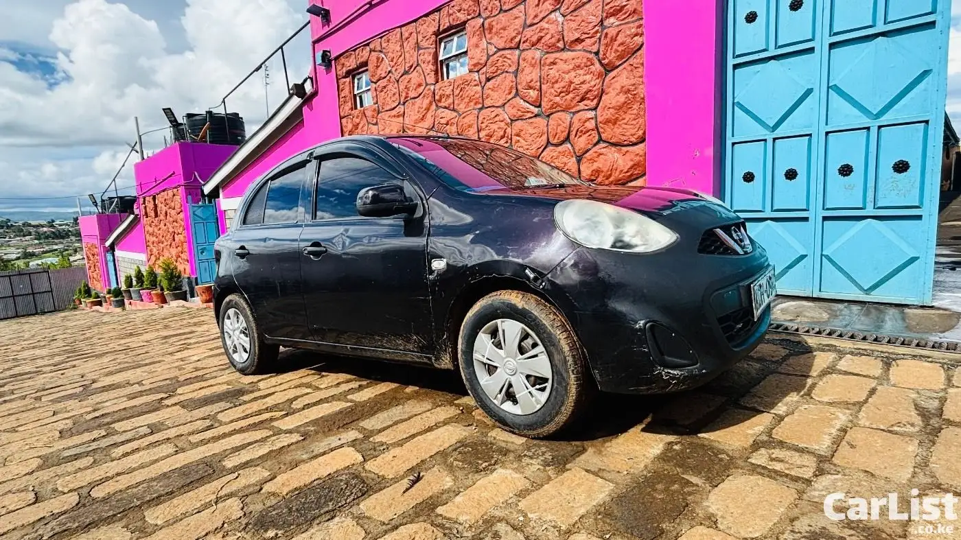 Nissan March 2015 (K13), 1200cc automatic, dark purple (appears black). Well maintained, fuel efficient, ideal for daily use. Features include ABS, 2 airbags, power windows, electric mirrors, Kenwood screen, central locking. Good condition with minor scratches.